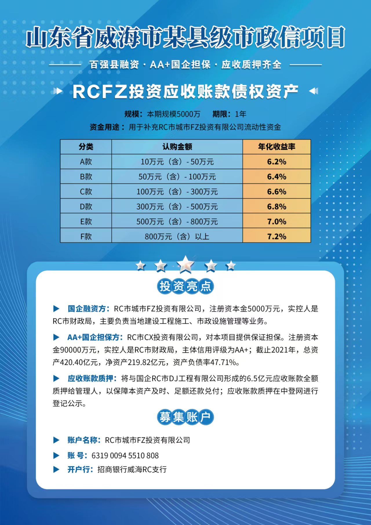 山东荣成应收账款债权资产资料 linbin123456 2023-04-10 405 0 微信号:18321177950添加微信好友, 获取更多信息复制微信号山东荣成应收账款债权资产.txt2e8b19f341148e3bb88adc93e778812.jpg1、产品说明书--RCFZ投资项目.pdf 山东荣成应收账款债权资产资料 << 武隆建设投资集团债权融资计划资料 山东荣成应收账款债权资产 >> 您可以还会对下面的文章感兴趣: 暂无相关文章 相关文章 广西崇左城建资产运营2025债权资产项目资料 广西崇左城建资产运营2025债权资产项目 河源市江东新区公用事业有限公司2025年债权资产1期—河源市江东新区公用事业有限公司2025年债权资产2期资料 河源市江东新区公用事业有限公司2025年债权资产1期—河源市江东新区公用事业有限公司2025年债权资产2期风险评估 罗山县宝城建设投资有限责任公司债权拍卖项目资料 XX市XX古城建投2025年债权资产转让1期-XX市XX古城建投2025年债权资产转让4期资料 荆门东宝城投2025年债权资产1期—荆门东宝城投2025年债权资产2期资料 宿松交通建设投资2025年债权资产资料