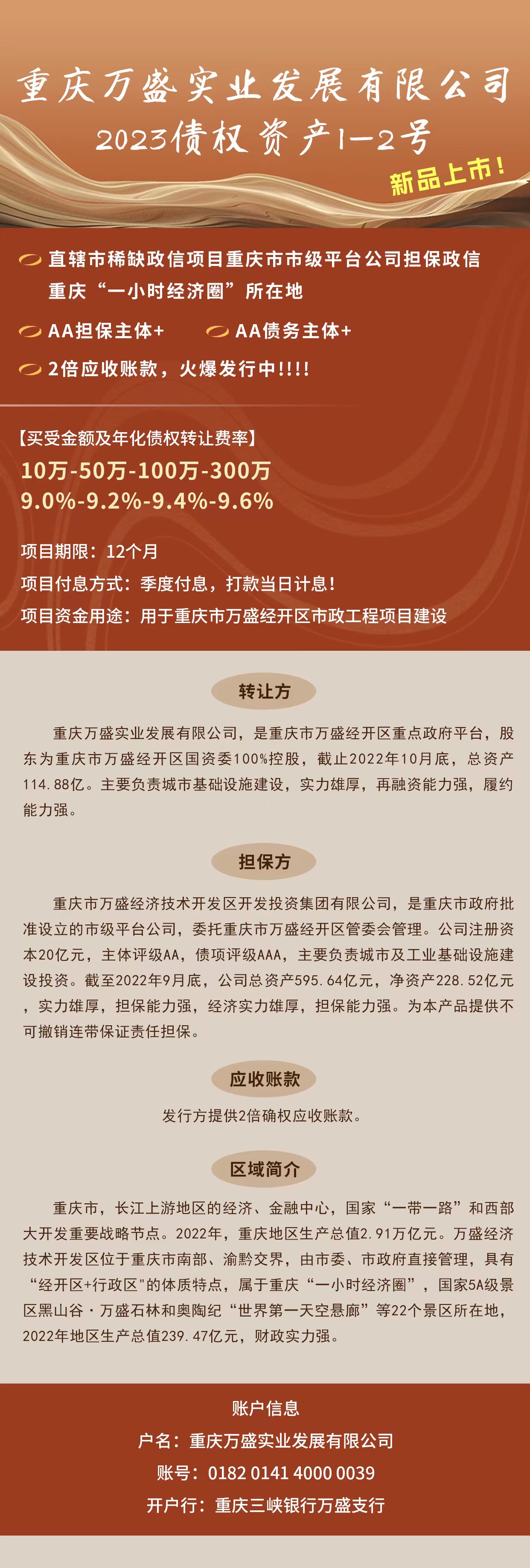 重庆万盛实业发展有限公司2023债权资产1-2号资料 linbin123456 2023-05-25 344 0 微信号:18321177950添加微信好友, 获取更多信息复制微信号重庆万盛实业发展有限公司2023债权资产1-2号.txtd7086eb20633fd8b10af325102e3505.jpg推介材料.pdf << 奉节三峡生态产业发展债权权益计划 重庆万盛实业发展有限公司2023债权资产1-2号 >> 您可以还会对下面的文章感兴趣: 暂无相关文章 相关文章 广西崇左城建资产运营2025债权资产项目资料 广西崇左城建资产运营2025债权资产项目 河源市江东新区公用事业有限公司2025年债权资产1期—河源市江东新区公用事业有限公司2025年债权资产2期资料 河源市江东新区公用事业有限公司2025年债权资产1期—河源市江东新区公用事业有限公司2025年债权资产2期风险评估 罗山县宝城建设投资有限责任公司债权拍卖项目资料 XX市XX古城建投2025年债权资产转让1期-XX市XX古城建投2025年债权资产转让4期资料 荆门东宝城投2025年债权资产1期—荆门东宝城投2025年债权资产2期资料 宿松交通建设投资2025年债权资产资料