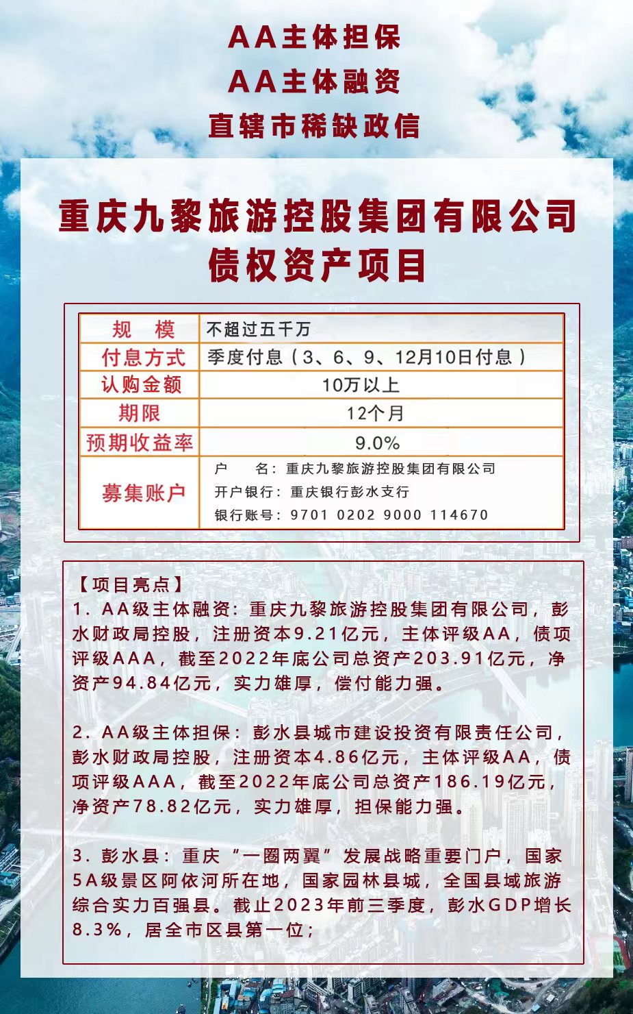 重庆九黎旅游控股集团有限公司债权资产项目 linbin123456 2024-02-29 196 0 微信号:18321177950添加微信好友, 获取更多信息复制微信号新建 文本文档.txtbdeb0d9eec835cf6a87900b00a08645.jpg认购协议(1).pdf << 重庆酉州资产经营管理股份有限公司债权资产项目 重庆九黎旅游控股集团有限公司债权资产项目 >> 您可以还会对下面的文章感兴趣: 暂无相关文章 相关文章 广西崇左城建资产运营2025债权资产项目资料 广西崇左城建资产运营2025债权资产项目 河源市江东新区公用事业有限公司2025年债权资产1期—河源市江东新区公用事业有限公司2025年债权资产2期资料 河源市江东新区公用事业有限公司2025年债权资产1期—河源市江东新区公用事业有限公司2025年债权资产2期风险评估 罗山县宝城建设投资有限责任公司债权拍卖项目资料 XX市XX古城建投2025年债权资产转让1期-XX市XX古城建投2025年债权资产转让4期资料 荆门东宝城投2025年债权资产1期—荆门东宝城投2025年债权资产2期资料 宿松交通建设投资2025年债权资产资料