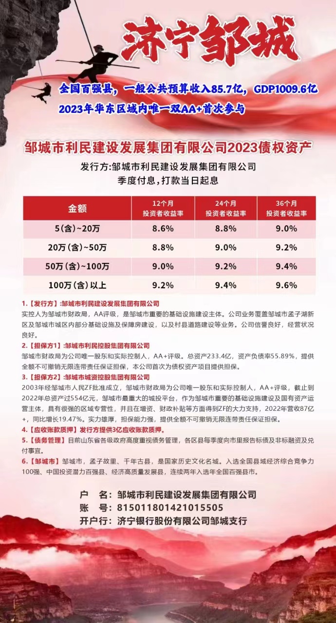 济宁邹城利民债权资产项目资料 linbin123456 2024-04-12 238 0 微信号:18321177950添加微信好友, 获取更多信息复制微信号登记证明(2000万两年期)(1).pdf7ea49dce435d71ff934ebb42a944d51.jpg登记证明(2000万一年期)(1).pdf济宁邹城利民债权资产项目.txt产品说明书与认购协议(1).pdf << 济宁邹城利民债权资产项目 金谷信托-287号苏中泰州市级政信 >> 您可以还会对下面的文章感兴趣: 暂无相关文章 相关文章 广西崇左城建资产运营2025债权资产项目资料 广西崇左城建资产运营2025债权资产项目 河源市江东新区公用事业有限公司2025年债权资产1期—河源市江东新区公用事业有限公司2025年债权资产2期资料 河源市江东新区公用事业有限公司2025年债权资产1期—河源市江东新区公用事业有限公司2025年债权资产2期风险评估 罗山县宝城建设投资有限责任公司债权拍卖项目资料 XX市XX古城建投2025年债权资产转让1期-XX市XX古城建投2025年债权资产转让4期资料 荆门东宝城投2025年债权资产1期—荆门东宝城投2025年债权资产2期资料 宿松交通建设投资2025年债权资产资料