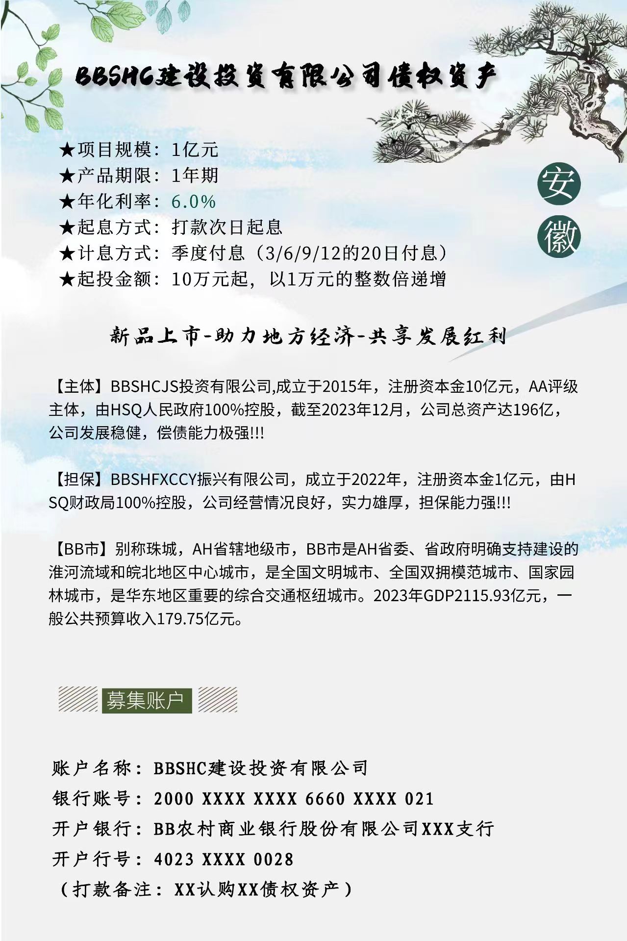 蚌埠市XX2024融资计划资料 linbin123456 2024-04-23 163 0 微信号:18321177950添加微信好友, 获取更多信息复制微信号1-融资方董事会决议.pdf3-担保函.pdf蚌埠市XX2024融资计划.txt4b26abef0414e1a637a66add60f7535.jpg << 蚌埠市XX2024融资计划 防城港市城市建设投资有限责任公司债权转让项目风险评估报告 >> 您可以还会对下面的文章感兴趣: 暂无相关文章 相关文章 广西崇左城建资产运营2025债权资产项目资料 广西崇左城建资产运营2025债权资产项目 河源市江东新区公用事业有限公司2025年债权资产1期—河源市江东新区公用事业有限公司2025年债权资产2期资料 河源市江东新区公用事业有限公司2025年债权资产1期—河源市江东新区公用事业有限公司2025年债权资产2期风险评估 罗山县宝城建设投资有限责任公司债权拍卖项目资料 XX市XX古城建投2025年债权资产转让1期-XX市XX古城建投2025年债权资产转让4期资料 荆门东宝城投2025年债权资产1期—荆门东宝城投2025年债权资产2期资料 宿松交通建设投资2025年债权资产资料