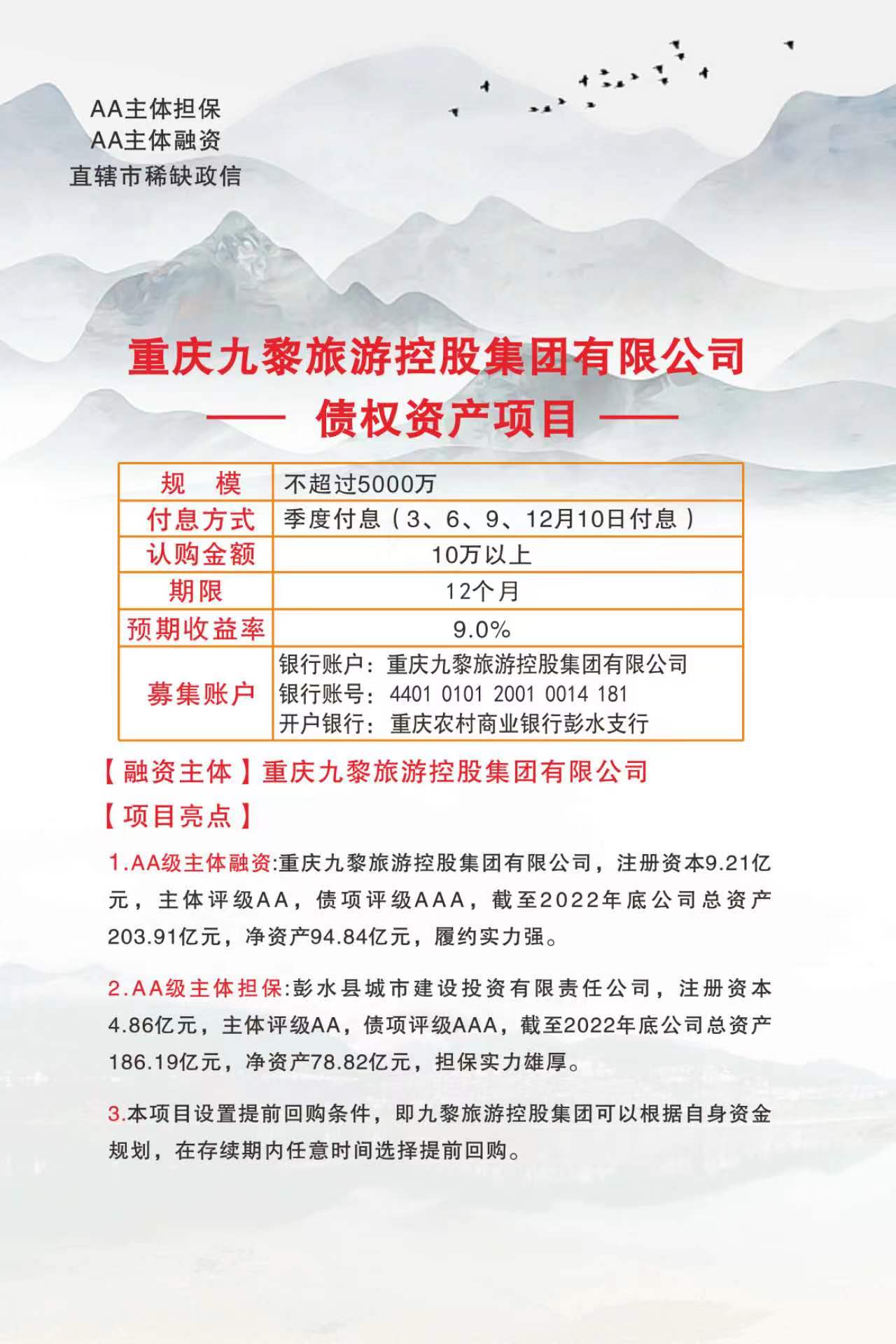 重庆九黎旅游控股集团有限公司债权资产项目资料 linbin123456 2024-05-16 176 0 微信号:18321177950添加微信好友, 获取更多信息复制微信号担保方董事会决议.pdf94d74d4602f880d55e6c756d2427b50.jpg担保函.pdf重庆九黎旅游控股集团有限公司债权资产项目.txt发行人董事会决议.pdf << 重庆九黎旅游控股集团有限公司债权资产项目 金谷信托 194号淮安清江浦政信风险评估报告 >> 您可以还会对下面的文章感兴趣: 暂无相关文章 相关文章 广西崇左城建资产运营2025债权资产项目资料 广西崇左城建资产运营2025债权资产项目 河源市江东新区公用事业有限公司2025年债权资产1期—河源市江东新区公用事业有限公司2025年债权资产2期资料 河源市江东新区公用事业有限公司2025年债权资产1期—河源市江东新区公用事业有限公司2025年债权资产2期风险评估 罗山县宝城建设投资有限责任公司债权拍卖项目资料 XX市XX古城建投2025年债权资产转让1期-XX市XX古城建投2025年债权资产转让4期资料 荆门东宝城投2025年债权资产1期—荆门东宝城投2025年债权资产2期资料 宿松交通建设投资2025年债权资产资料