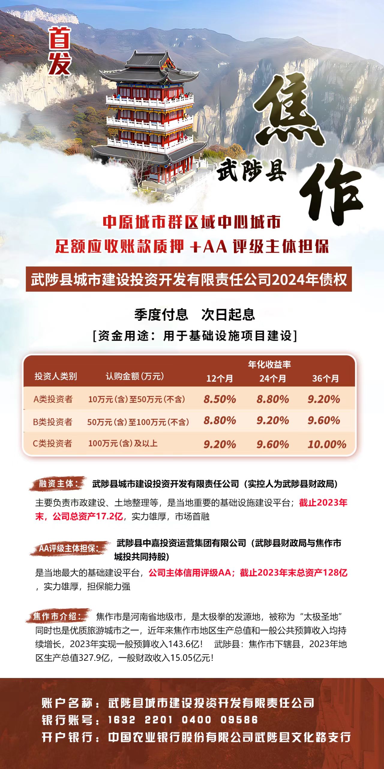 武陟县城市建设投资开发有限责任公司2024年债权项目资料 linbin123456 2024-07-09 112 0 微信号:18321177950添加微信好友, 获取更多信息复制微信号产品说明认购协议-武陟县.pdf9f3e5fc4d6baaa4c204c531a7a7a38a.jpg武陟县城市建设投资开发有限责任公司2024年债权项目.txt担保函及董事会决议.pdf << 武陟县城市建设投资开发有限责任公司2024年债权项目 山东鑫泰建设集团2024融资计划 >> 您可以还会对下面的文章感兴趣: 暂无相关文章 相关文章 广西崇左城建资产运营2025债权资产项目资料 广西崇左城建资产运营2025债权资产项目 河源市江东新区公用事业有限公司2025年债权资产1期—河源市江东新区公用事业有限公司2025年债权资产2期资料 河源市江东新区公用事业有限公司2025年债权资产1期—河源市江东新区公用事业有限公司2025年债权资产2期风险评估 罗山县宝城建设投资有限责任公司债权拍卖项目资料 XX市XX古城建投2025年债权资产转让1期-XX市XX古城建投2025年债权资产转让4期资料 荆门东宝城投2025年债权资产1期—荆门东宝城投2025年债权资产2期资料 宿松交通建设投资2025年债权资产资料