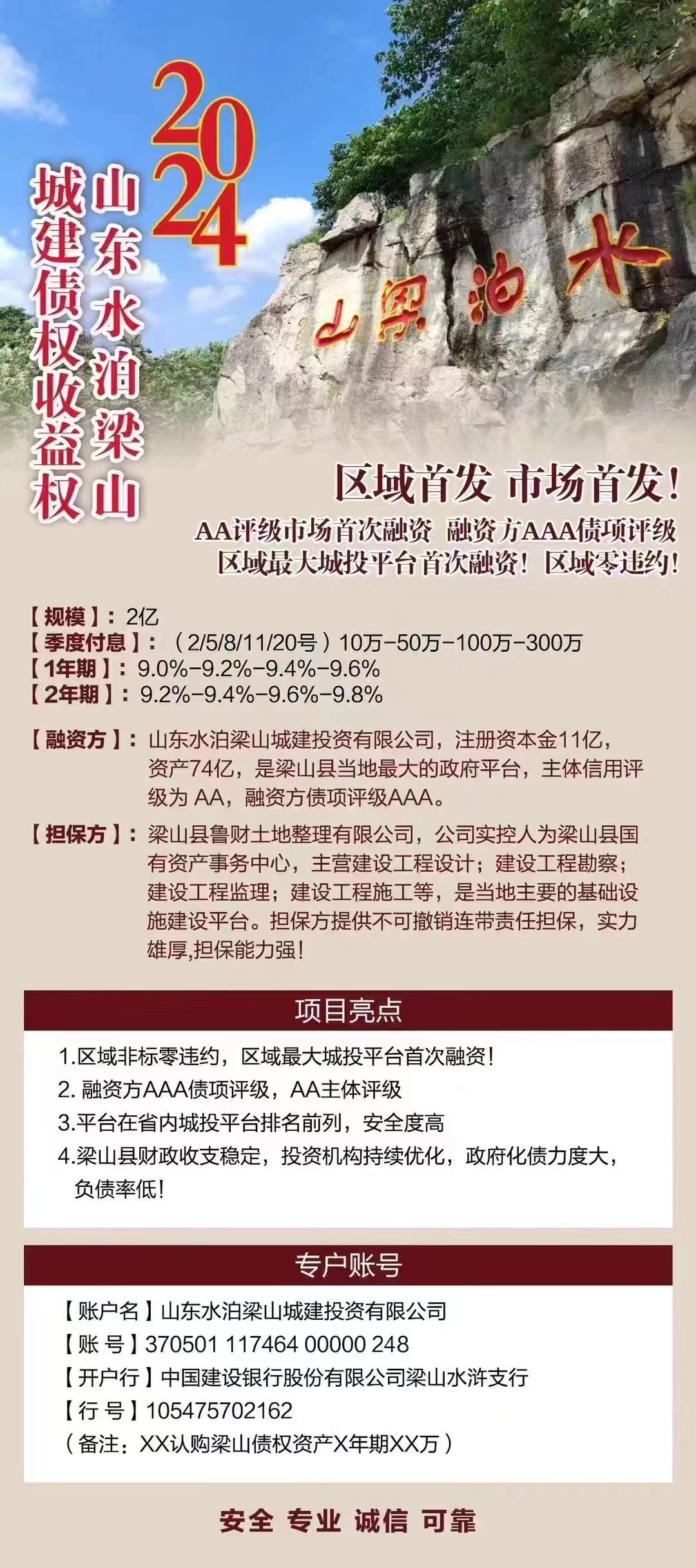 山东水泊梁山城建债权收益权资料 linbin123456 2024-07-23 154 0 微信号:18321177950添加微信好友, 获取更多信息复制微信号6b090a359aa5c20e4836f7a6c255c36.jpg山东水泊梁山城建债权收益权.pdf山东水泊梁山城建债权收益权.txt山东水泊梁山城投2023年跟踪评级报告(1).pdf << 山东水泊梁山城建债权收益权 四川资安建设管理有限责任公司债权资产 >> 您可以还会对下面的文章感兴趣: 暂无相关文章 相关文章 广西崇左城建资产运营2025债权资产项目资料 广西崇左城建资产运营2025债权资产项目 河源市江东新区公用事业有限公司2025年债权资产1期—河源市江东新区公用事业有限公司2025年债权资产2期资料 河源市江东新区公用事业有限公司2025年债权资产1期—河源市江东新区公用事业有限公司2025年债权资产2期风险评估 罗山县宝城建设投资有限责任公司债权拍卖项目资料 XX市XX古城建投2025年债权资产转让1期-XX市XX古城建投2025年债权资产转让4期资料 荆门东宝城投2025年债权资产1期—荆门东宝城投2025年债权资产2期资料 宿松交通建设投资2025年债权资产资料