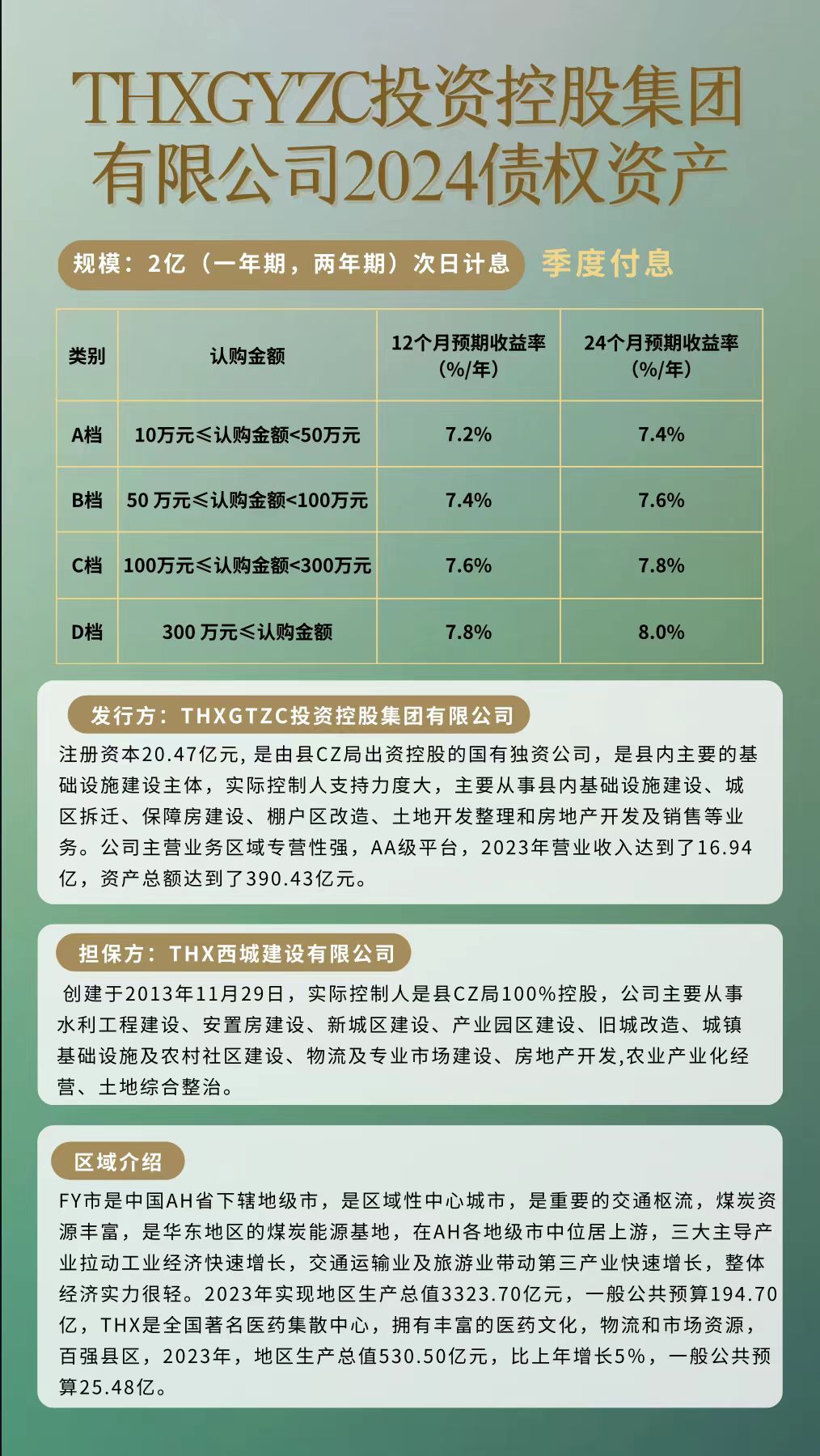 安徽FYTH县2024债权计划资料 linbin123456 2024-07-26 143 0 微信号:18321177950添加微信好友, 获取更多信息复制微信号f579d285b28b2c6d142d472db45f58d.jpg2.1发行人董事会决议(1份)_纯图版.pdf安徽FYTH县2024债权计划.txt1、认购协议+资产说明书(4)_纯图版.pdf << 安徽FYTH县2024债权计划 安徽阜阳太和县2024债权资产风险评估报告 >> 您可以还会对下面的文章感兴趣: 暂无相关文章 相关文章 广西崇左城建资产运营2025债权资产项目资料 广西崇左城建资产运营2025债权资产项目 河源市江东新区公用事业有限公司2025年债权资产1期—河源市江东新区公用事业有限公司2025年债权资产2期资料 河源市江东新区公用事业有限公司2025年债权资产1期—河源市江东新区公用事业有限公司2025年债权资产2期风险评估 罗山县宝城建设投资有限责任公司债权拍卖项目资料 XX市XX古城建投2025年债权资产转让1期-XX市XX古城建投2025年债权资产转让4期资料 荆门东宝城投2025年债权资产1期—荆门东宝城投2025年债权资产2期资料 宿松交通建设投资2025年债权资产资料
