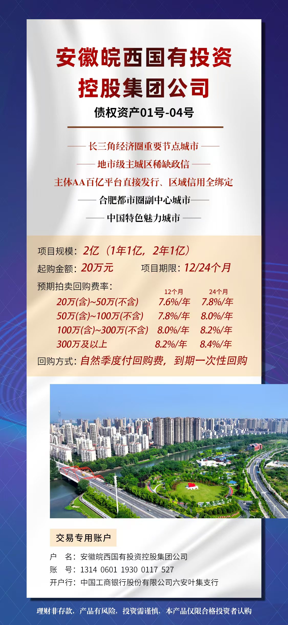 安徽皖西国有投资控股集团公司债权资产01号-04号资料 linbin123456 2024-08-30 23 0 微信号:18321177950添加微信好友, 获取更多信息复制微信号a8fcae839088f74e1433fcbd37fb22e.jpg安徽皖西国有投资控股集团公司债权资产01号-04号.txt签约指南.pdf拍卖转让-回购协议.pdf主体评级报告.pdf << 安徽皖西国有投资控股集团公司债权资产01号-04号 浙江安吉优创园区建设发展股份有限公司债权资产 >> 您可以还会对下面的文章感兴趣: 暂无相关文章 相关文章 广西崇左城建资产运营2025债权资产项目资料 广西崇左城建资产运营2025债权资产项目 河源市江东新区公用事业有限公司2025年债权资产1期—河源市江东新区公用事业有限公司2025年债权资产2期资料 河源市江东新区公用事业有限公司2025年债权资产1期—河源市江东新区公用事业有限公司2025年债权资产2期风险评估 罗山县宝城建设投资有限责任公司债权拍卖项目资料 XX市XX古城建投2025年债权资产转让1期-XX市XX古城建投2025年债权资产转让4期资料 荆门东宝城投2025年债权资产1期—荆门东宝城投2025年债权资产2期资料 宿松交通建设投资2025年债权资产资料