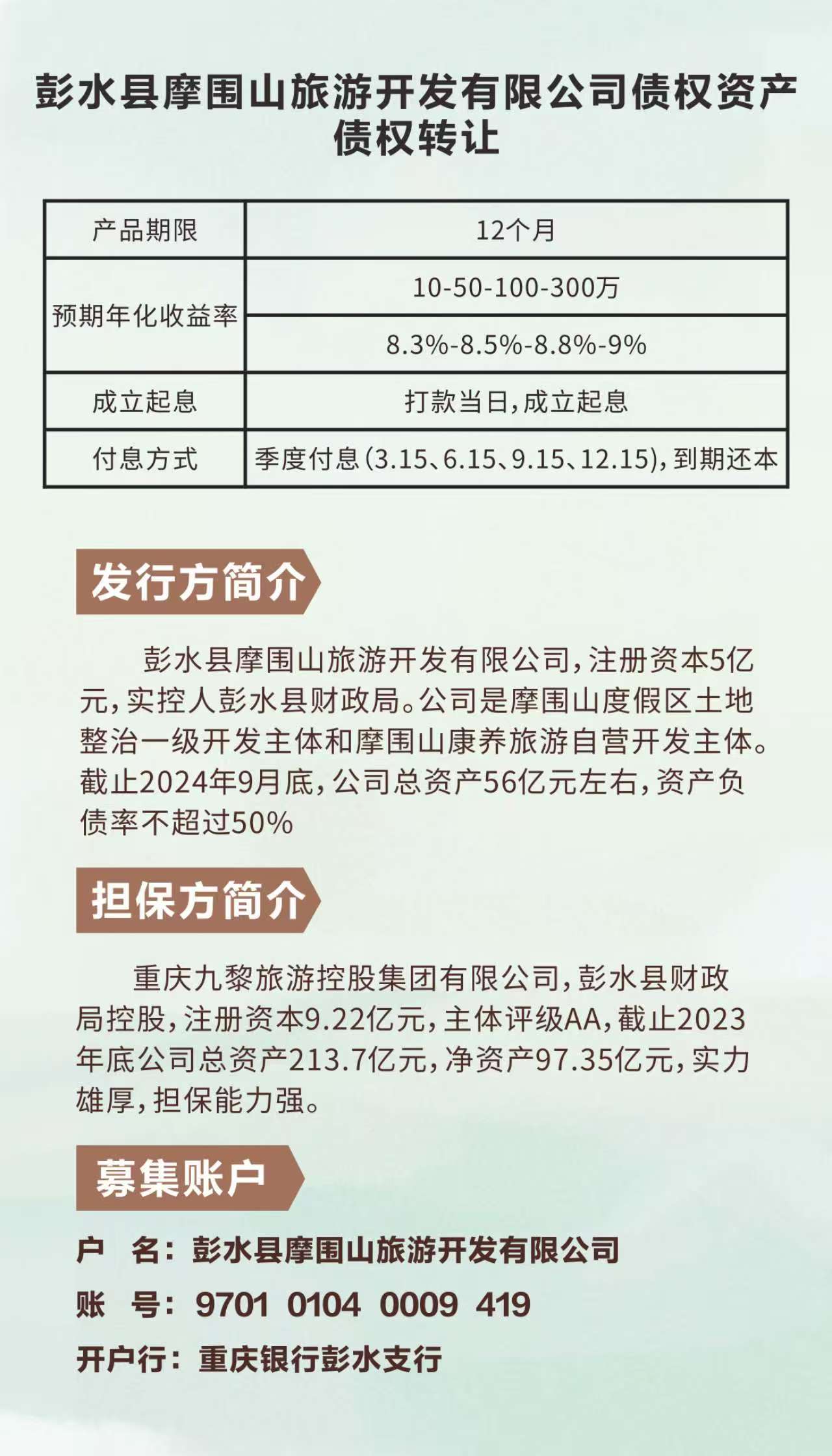 彭水县摩围山旅游开发有限公司债权资产资料 linbin123456 2024-12-19 35 0 微信号:18321177950添加微信好友, 获取更多信息复制微信号23f290088f9e2affc1375f928bfd735.jpg彭水县摩围山旅游开发有限公司债权资产.txt2、发行人股东决定书.pdf1、债权转让协议.pdf << 彭水县摩围山旅游开发有限公司债权资产 邢台市龙岗投资有限公司债权资产 >> 您可以还会对下面的文章感兴趣: 暂无相关文章 相关文章 广西崇左城建资产运营2025债权资产项目资料 广西崇左城建资产运营2025债权资产项目 河源市江东新区公用事业有限公司2025年债权资产1期—河源市江东新区公用事业有限公司2025年债权资产2期资料 河源市江东新区公用事业有限公司2025年债权资产1期—河源市江东新区公用事业有限公司2025年债权资产2期风险评估 罗山县宝城建设投资有限责任公司债权拍卖项目资料 XX市XX古城建投2025年债权资产转让1期-XX市XX古城建投2025年债权资产转让4期资料 荆门东宝城投2025年债权资产1期—荆门东宝城投2025年债权资产2期资料 宿松交通建设投资2025年债权资产资料