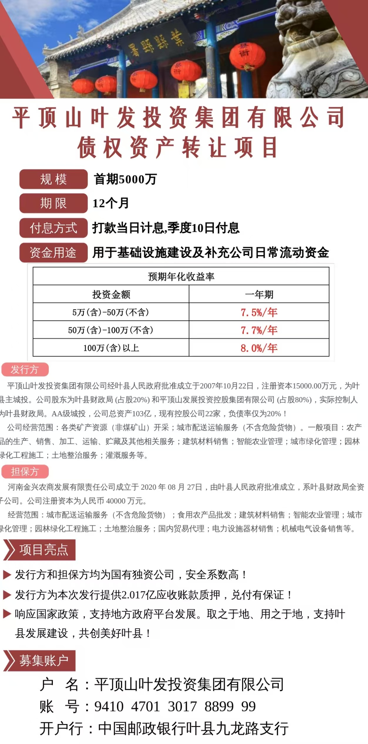 平顶山叶发投资集团有限公司债权资产转让项目资料 linbin123456 2025-06-17 12 0 微信号:18321177950添加微信好友, 获取更多信息复制微信号平顶山叶发投资集团有限公司债权资产转让项目.txt33f56ee95d1d6185e3ec3cf43872c15.jpg叶发投资集团债权转让协议.pdf << 平顶山叶发投资集团有限公司债权资产转让项目 邢台景信旅游开发有限公司债权资产 >> 您可以还会对下面的文章感兴趣: 暂无相关文章 相关文章 广西崇左城建资产运营2025债权资产项目资料 广西崇左城建资产运营2025债权资产项目 河源市江东新区公用事业有限公司2025年债权资产1期—河源市江东新区公用事业有限公司2025年债权资产2期资料 河源市江东新区公用事业有限公司2025年债权资产1期—河源市江东新区公用事业有限公司2025年债权资产2期风险评估 罗山县宝城建设投资有限责任公司债权拍卖项目资料 XX市XX古城建投2025年债权资产转让1期-XX市XX古城建投2025年债权资产转让4期资料 荆门东宝城投2025年债权资产1期—荆门东宝城投2025年债权资产2期资料 宿松交通建设投资2025年债权资产资料